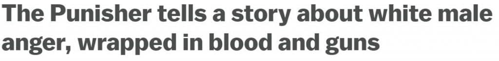 The headline makes it seem like the punisher is a mysoginist white supremacist terrorist. Hes a veteran vigilante who kills criminals!